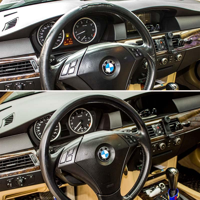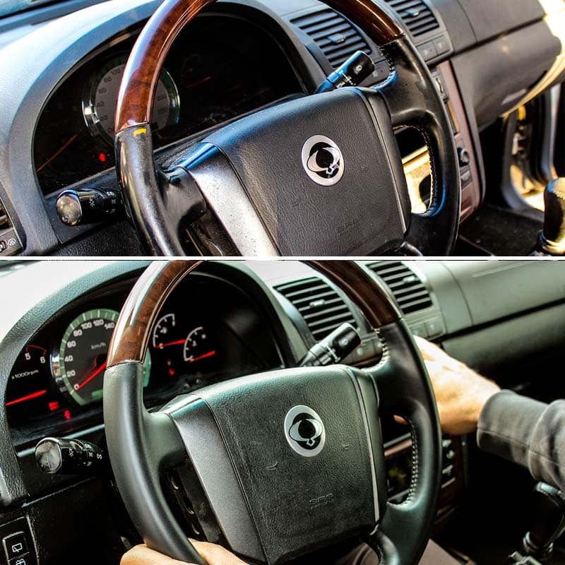 Years of daily use, UV exposure, and handling can leave your leather steering wheel looking worn out and rough. Our restoration kit addresses these common issues by rebuilding the surface, filling cracks, and recoloring the leather, all while preserving the wheel’s original stitching and shape. By doing so, it extends the life of your steering wheel and restores that luxurious feel and appearance.