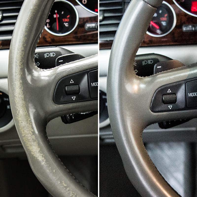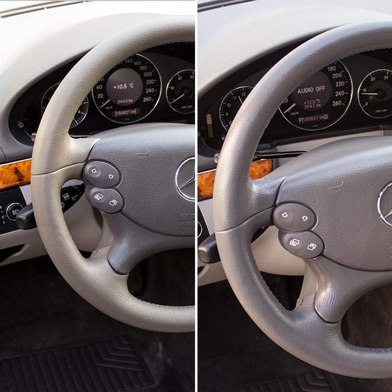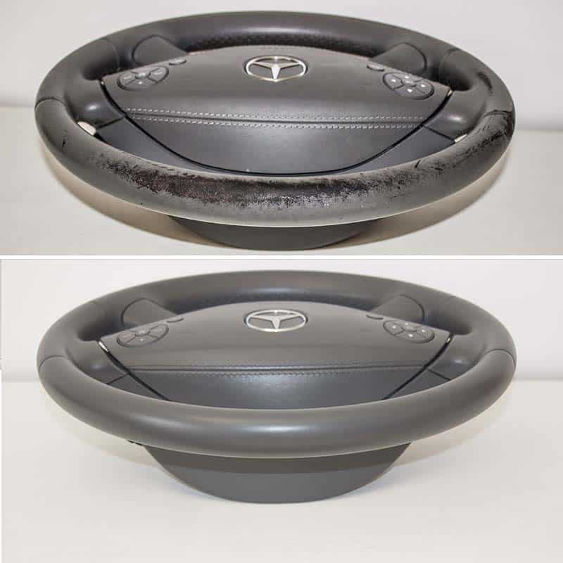 Years of daily use, UV exposure, and handling can leave your leather steering wheel looking worn out and rough. Our restoration kit addresses these common issues by rebuilding the surface, filling cracks, and recoloring the leather, all while preserving the wheel’s original stitching and shape. By doing so, it extends the life of your steering wheel and restores that luxurious feel and appearance.