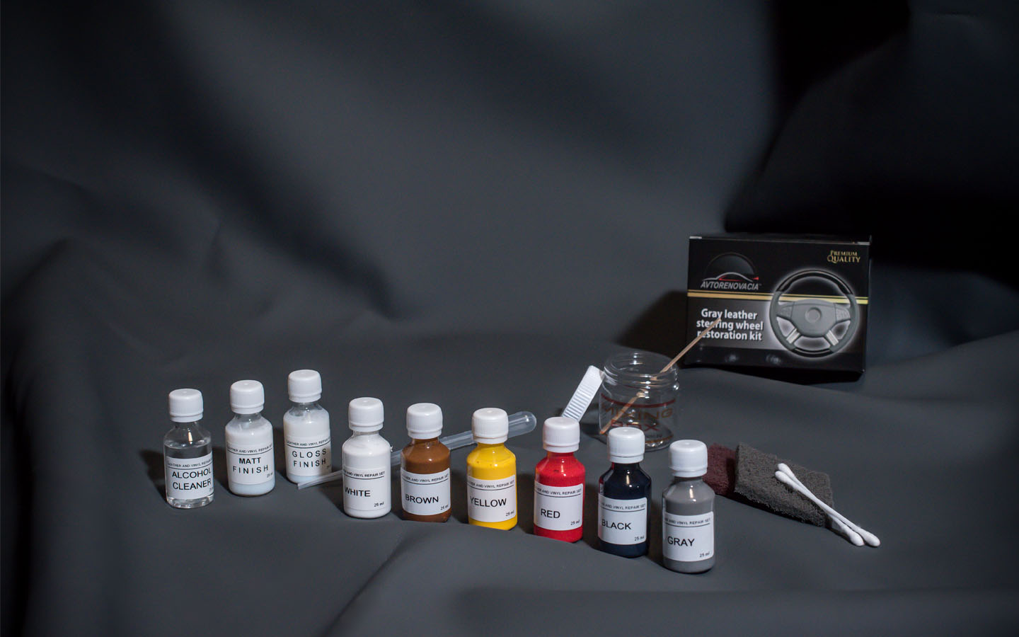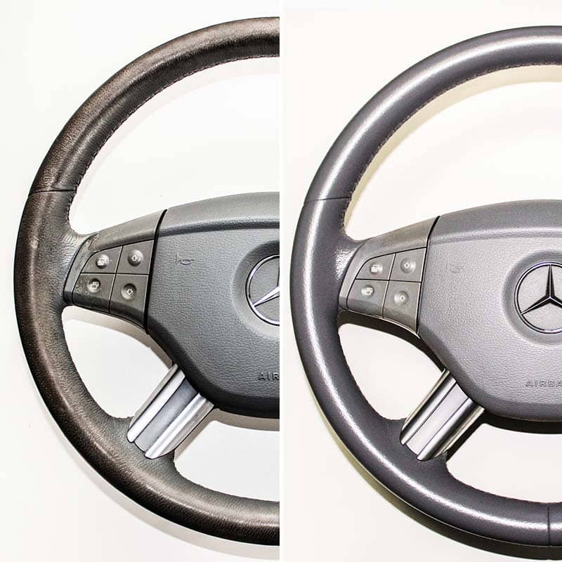 Revitalize your vehicle’s interior with our Gray Leather Steering Wheel Restoration Kit, the ultimate solution for worn and faded leather. Crafted by experts at AUTORENOVATION, this kit brings new life to your steering wheel, transforming it from cracked and dull to smooth, vibrant, and brand new in just a few hours. Designed for ease of use, it’s perfect for both professionals and car enthusiasts alike.